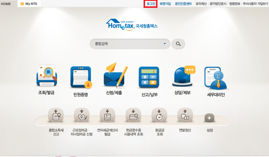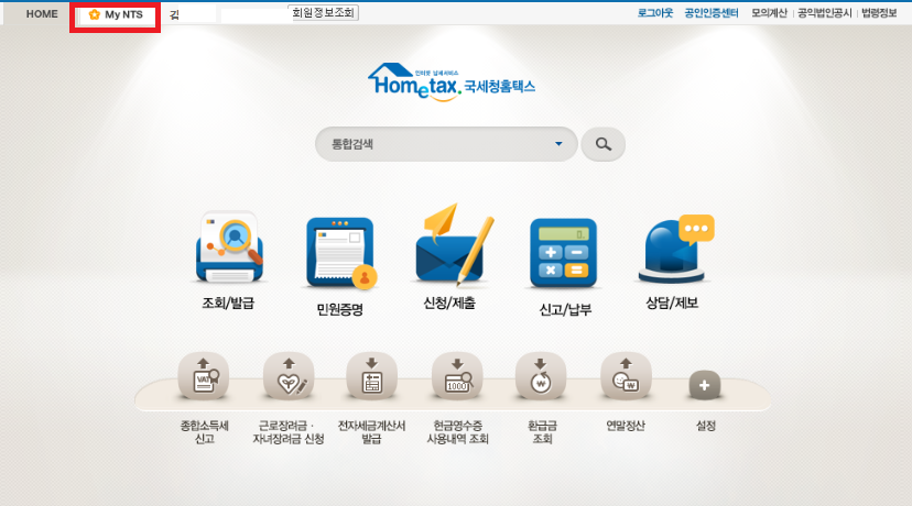 홈택스는 HOME탭과 My NTS탭으로 구성되어 있는데요