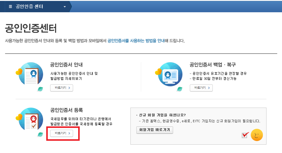 원활한 홈택스 이용을 위해서 이제 아래의 설명과 함께 홈택스에 공인인증서를 등록해보도록 하겠습니다.