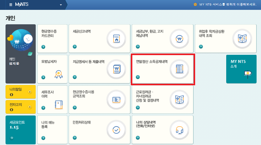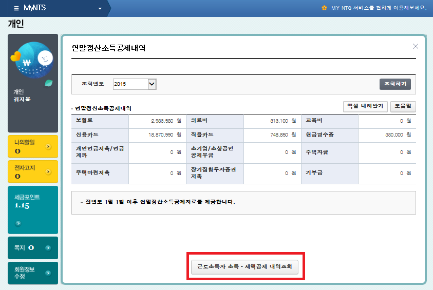 이 연말정산소득세액공제내역은 개인이 개별적으로 조회하여 제출하여야 합니다